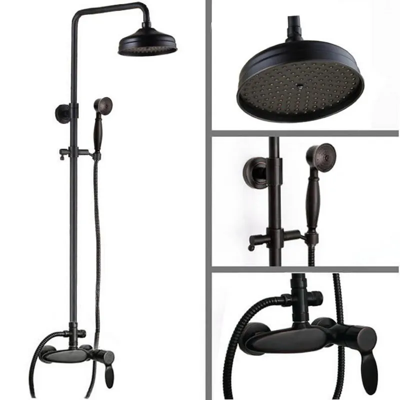 Black Oil Rubbed Brass Single Handle Bathroom Rainfall Rain Shower Head Faucet Set Mixer Tap Wall M