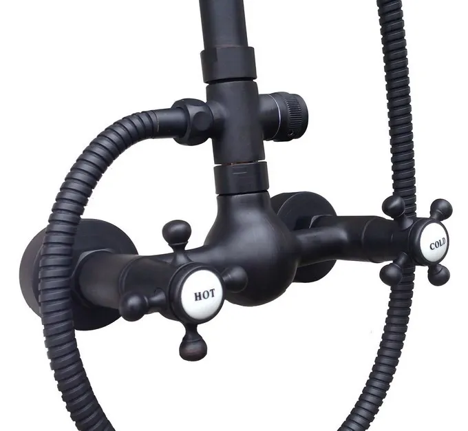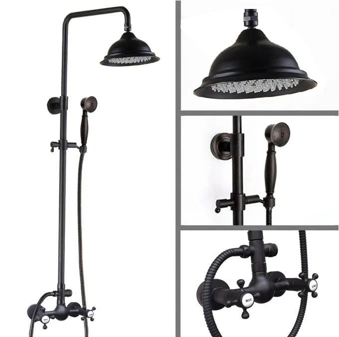 BEST SELLER Black Oil Rubbed Brass Dual Cross Handles Bathroom 8 Inch Round Rain Shower Faucet Set Bath Mixer T