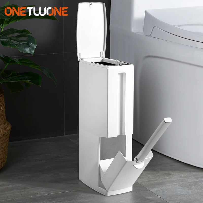 Waste Bin Storage Bucket Plastic Trash Can Set With Toilet Brush Bathroom Dustbin Trash Cans Garbag