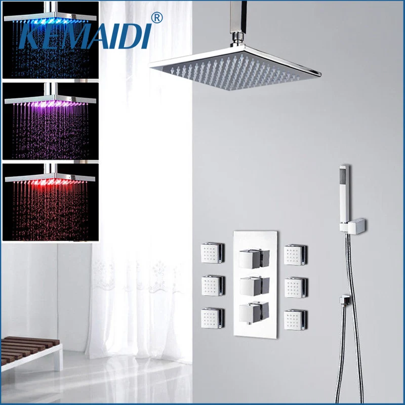 ORIGINAL KEMAIDI Bathroom Shower 8"10"12" 16 Inch LED Chrome Shower Faucet Set Thermostatic Valve Mixer Tap