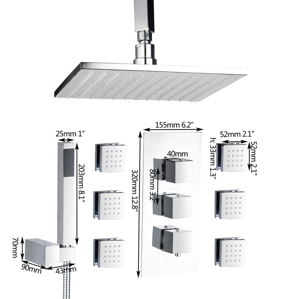 KEMAIDI Bathroom Shower 8"10"12" 16 Inch LED Chrome Shower Faucet Set Thermostatic Valve Mixer Tap