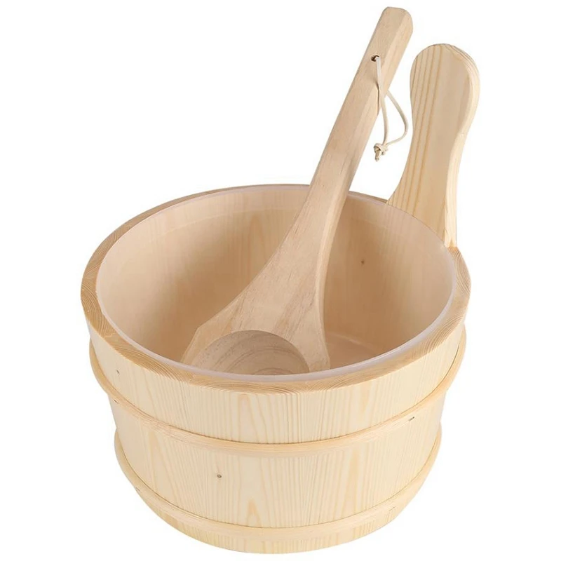 Hot Sale Promotion! Bathroom Natural Wooden Bucket + Ladle Set For Sauna Spa Bathroom Accessories